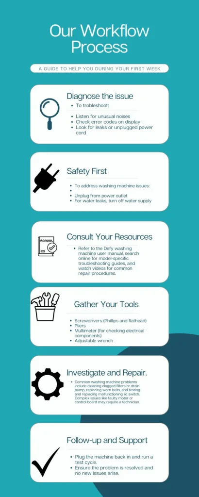 Before attempting any repairs on your Defy washing machine top loader 13kg, it’s important to identify the problem. Common issues include the machine not starting, not spinning, or not draining properly. It’s also possible that the machine is making strange noises or leaking water. Once you’ve identified the problem, you can begin troubleshooting or contact a professional for repair.
