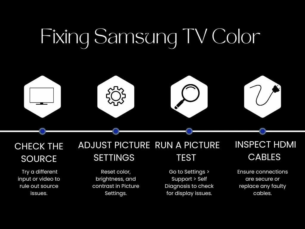 “Flowchart for troubleshooting and adjusting color settings on your Samsung TV to enhance picture quality.