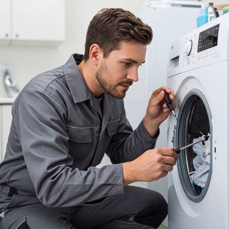 an appliance being serviced by a qualified technician in a Durban home, illustrating essential bosch dryer maintenance tips