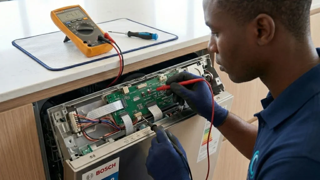 • Front-Loader Washing Machines: We service all Bosch models, including the VarioPerfect and EcoSilence Drive units. We handle common “Error 18” pump blocks, motor carbon brush replacements, and PCB (control board) repairs on Series 4, 6, and 8 machines.